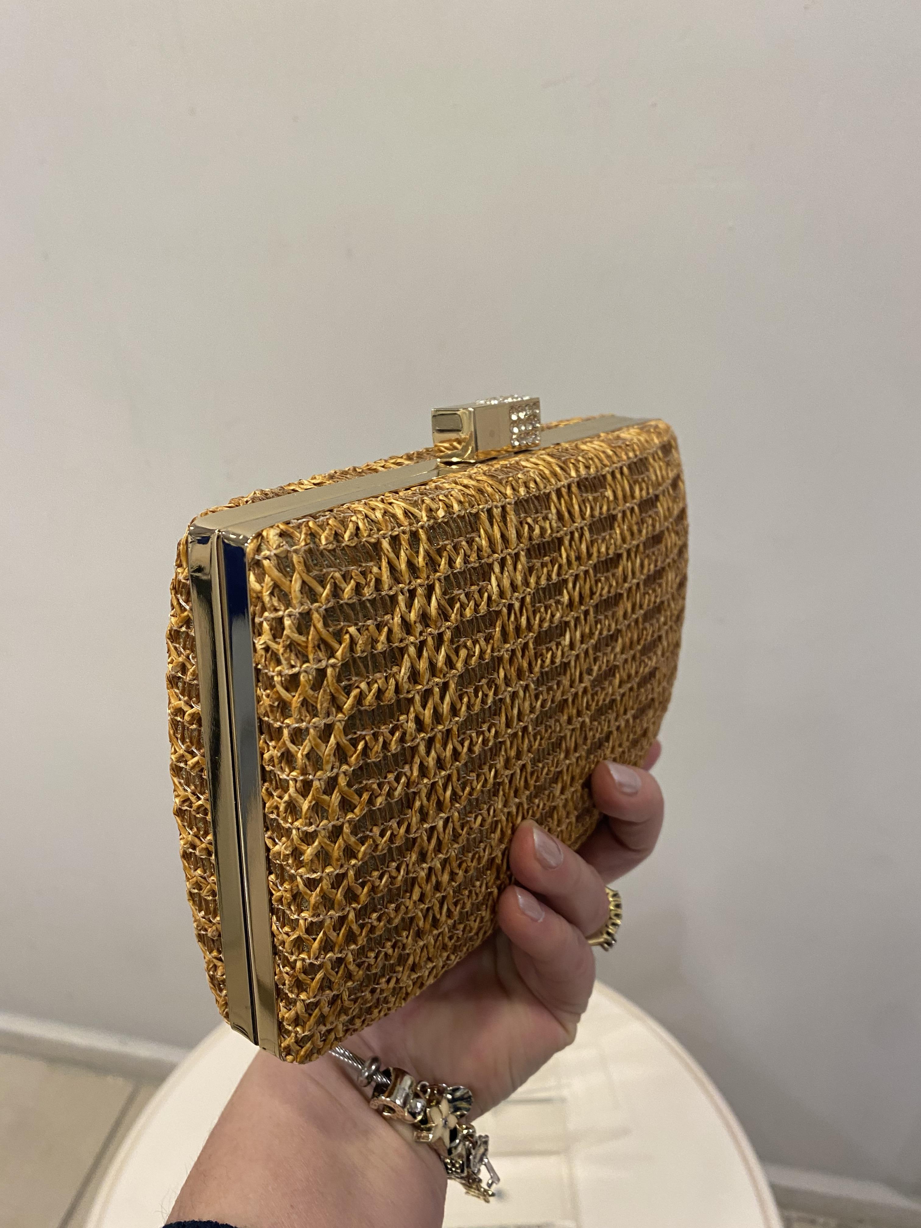 Zincir saplı hasır görünümlü portföy abiye çanta, bahar ve yaz aylarındaki davetlerde, mezuniyet törenlerinde, nişan ve düğünlerde, hoş geldin partilerinde ve özel akşam yemeklerinde kendinizi şık hissetmenizi sağlayacak. Ayrıca, gündelik hayatta da günlük kombinleriniz ile rahatça kullanabilirsiniz.